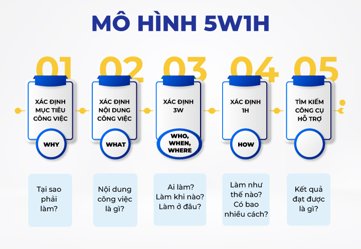 Quy trình giao việc theo 5W1H (Who, What, When, Where, Why, How) là một cách hữu ích để đảm bảo rằng việc giao công việc diễn ra một cách hiệu quả và đầy đủ thông tin. Dưới đây là quy trình cụ thể:
